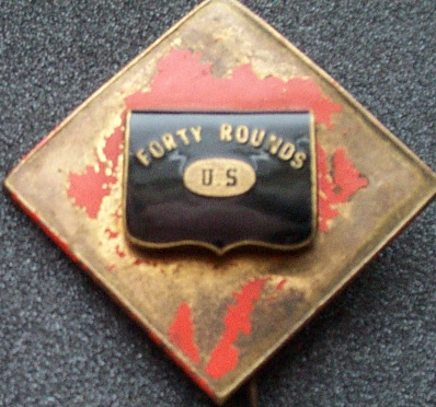 Third, a rather heavy 15th Corps badge, real silver with a black velvet insert. Possibly officer material. 2 1/2 inches tip to tip on the diagonal.