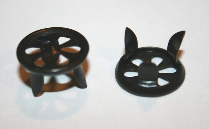 They are round with three "spokes" and folding flanges on the underside. The ones I have are Japanned. All you have to do is cut holes into your hat and push the flanges in; fold them out and the lip of the vent itself will keep it sandwiched against your hat.Brian White