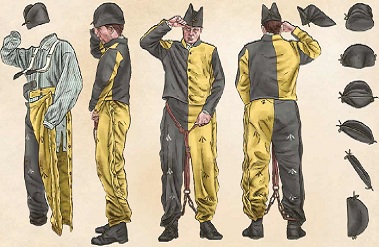 I think they looked like these, but instead of forage caps the men were given ladies' sun bonnets to help their aim. Can any of you experts help me with more details?