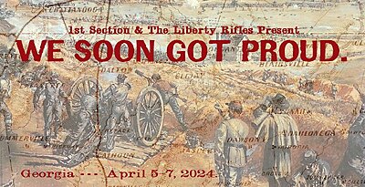 In early 1864, the Army of Tennessee artillery, camped near Dalton, Georgia and wrecked after the previous campaign, was reequipped, reorganized, and retrained. We will portray a battalion of light artillery—the artillery equivalent of an infantry regiment—as it tested its guns with live ammunition at long range and drilled drivers, cannoneers, and new draft animals on field maneuvers.