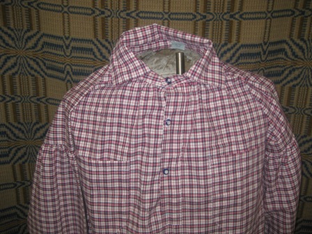 Damaged Size 44 Red, White and Blue check shirt. The shirt is not correctly set at the base of the collar and body of shirt. For this reason I'll let this one go for $50.00