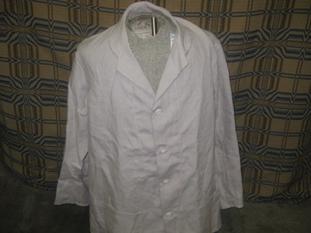 Natural Linen sack coat, unlined, Summer Weight coat. Machine sewn, button holes by hand. Size 46. $170.00