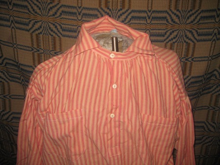All shirts are copies of mass produced shirts. These are not perfect, they are MACHINE SEWN THROUGHOUT, only the button holes are by hand. If you are looking for a perfect handsewn shirt, these are not for you. These are great secondary shirts to throw in your knapsack and to put on Saturday night. All clothing sales are final.