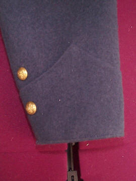 This jacket can be seen in period photos of several different of men from Ohio, Illinois & Indiana. This jacket is thought to be a private purchase jacket or a contractor made jacket for state issue. The Krause Jacket is mainly period machine sewn with 9 hand sewn corded buttonholes. Sleeves are made with false pointed cuffs and epaulets. This jacket is lined as per the original in cotton denim with a Padded Chest Size 3 ...40 In Chest. $255.