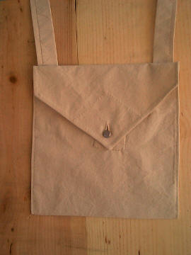 The Spinlin Haversack resides in the Museum of the Confederacy in Richmond VA. It is an important haversack since it is entirely machine sewn out of Cotton Duck, most likely a mass-produced product during the war. It is a large haversack aprox. 10tall X 13 wide and buttons close with a bone button .. $35 ea