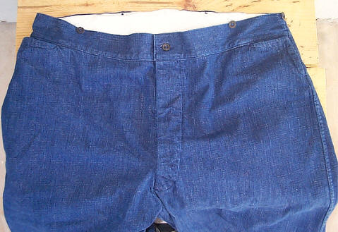 1 CIVT3 Blue Denim Work Trouser, period machine sewn.