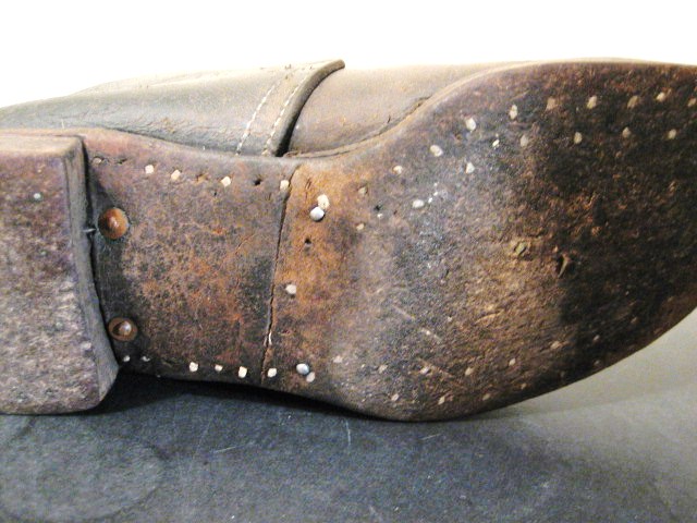 I was very pleasantly suprised to find a long time cobbler way out here in Idaho who does authentic repairs, sewn or pegged soles. The only thing he won't do is hobnails, as it would further damage his beat up hands and wrists...but he let me use his period last and hammer to pound in my own period hobnails.