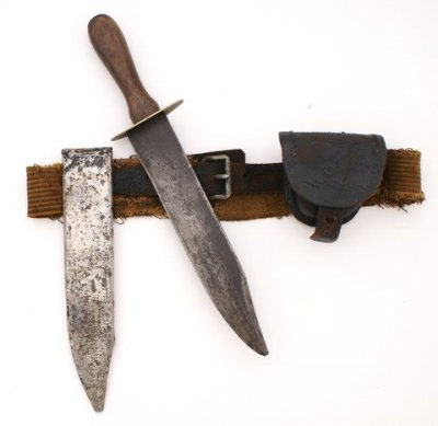 We do have one knife without a sheath in stock and ready to ship. Excellent for those early war events and that guerilla impression!