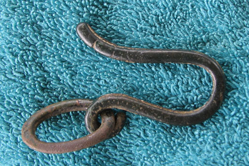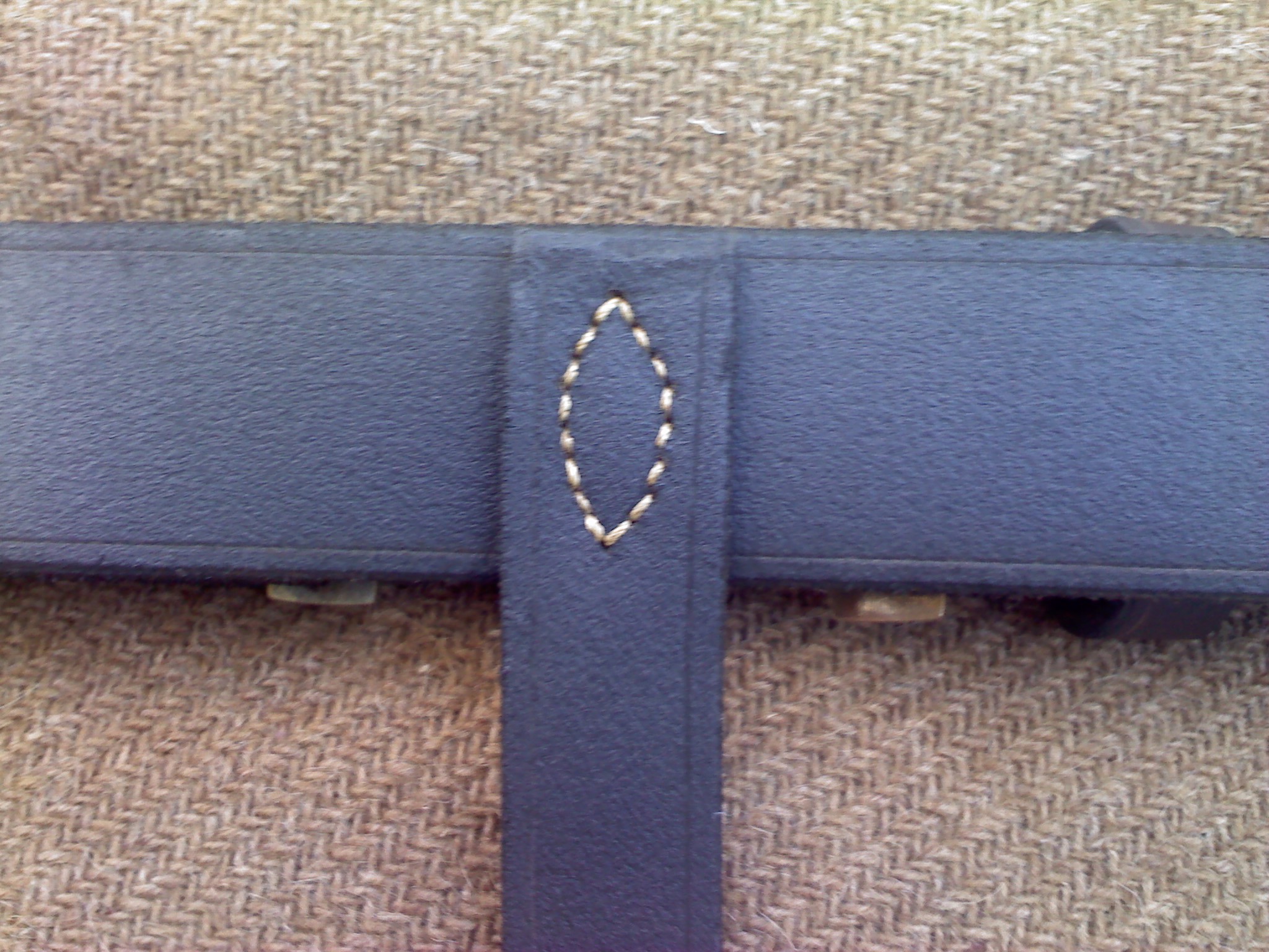 1 - Georgia Frame Troopers Sword Belt. Brown, cod oil/tallow stuffed finish. Complete with Richmond Depot (The Sutlers) Gutter back buckle, and hand made ring and hook. The front strap is sewn to the belt in the RD pattern, and the rear strap is sewn as a sliding loop. Belt has not been sized so that it can be sized to the buyer.