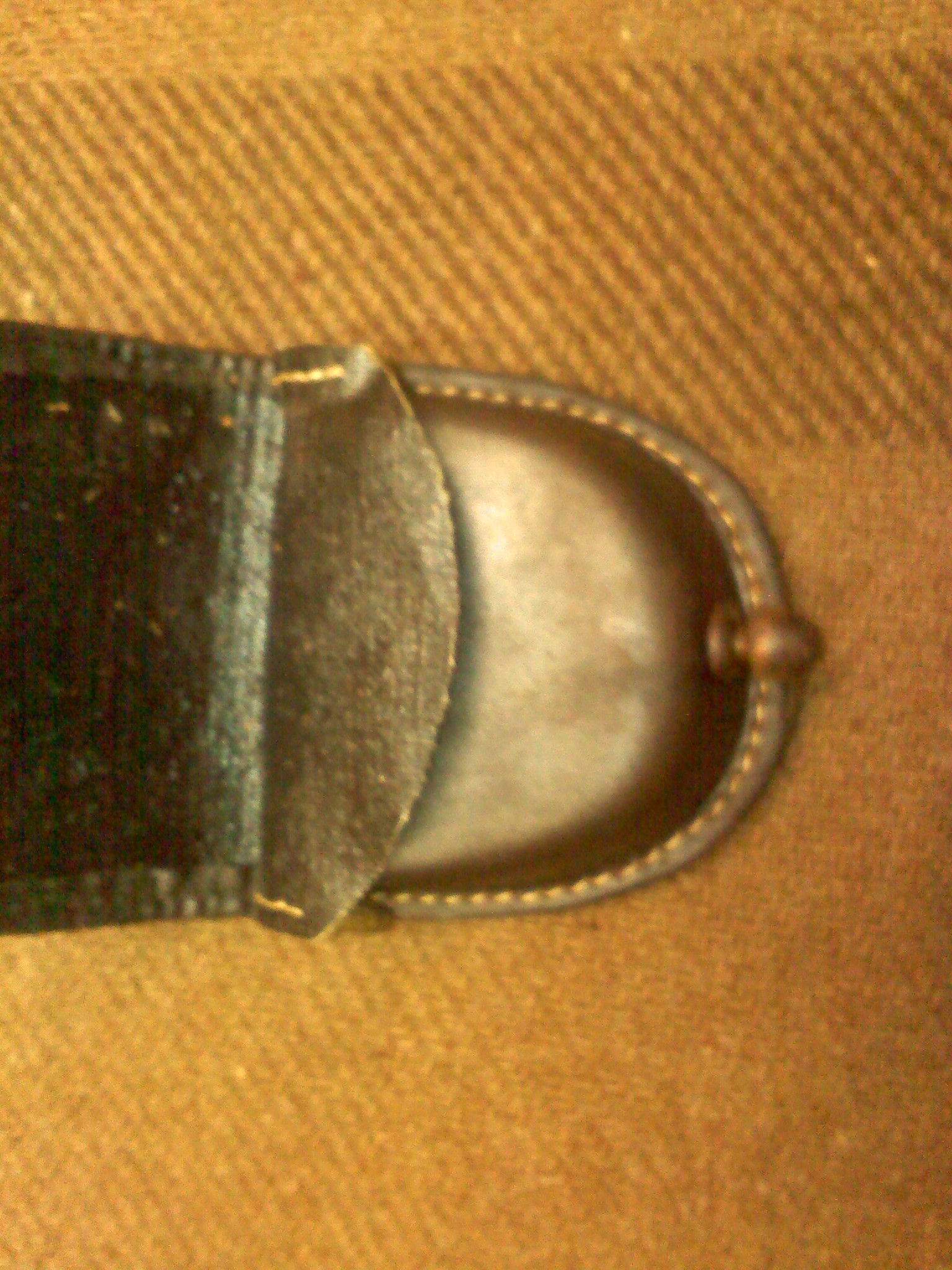 5 - Richmond Depot painted cloth belts, with leather ends. These are copied from the original at the MOC. The roller buckles are hand made by me. The leather billets are iron dyed and cod oil treated. The belts can be cut to size upon confirmation of order.