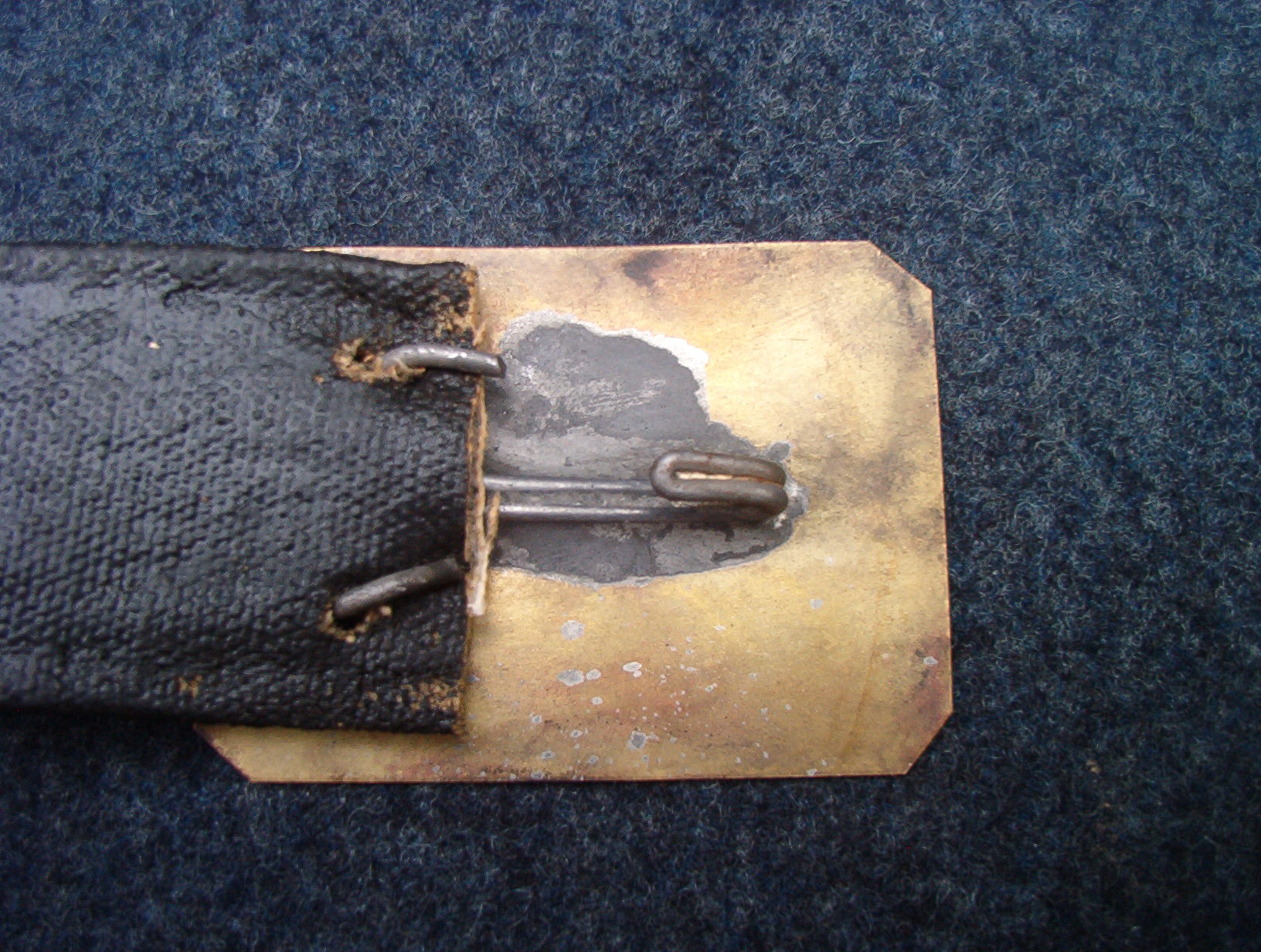 1 - Painted cloth belt w/ clipped corner belt plate. Belt is painted with a period recipe. Both has the correct gauge wire (wishbone style) hooks. Original belt plates like this one have been dug at numerous battle and camp sites from mid to late war. Sized to fit!