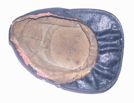 It was a pleasure to look at this cap in a context other than Echoes of Glory. Firstly, the jean wool exterior is more vivid color than is seen in the book. Secondly is the lining fabric, which is nice printed homespun patterned cotton, something unique to this cap. Note, Amzi’s initials and the date "1863" are scratched onto the underside of the visor.