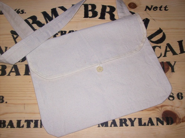 William Spinlin haversacks - The Spinlin haversack, which resides in the MoC, is a machine-sewn cotton haversack that closes with a single bone button. It's a pretty big bag at 10" tall x 13" wide. Plenty of room for housewives, telescopes, spare socks, grappling hooks, combs, tinware stolen from a pard, or maybe even rations. $35 each.