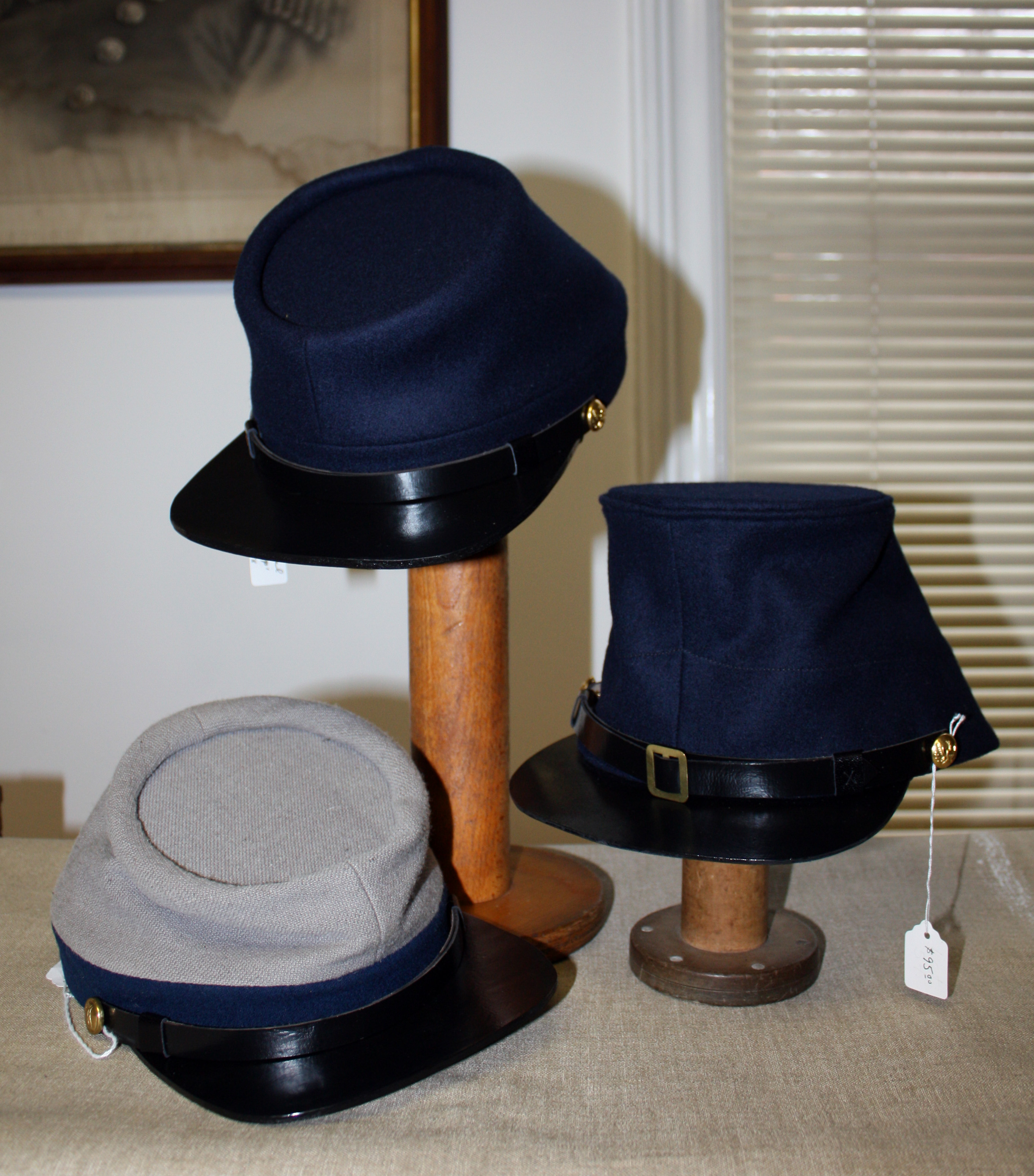 JUST IN! A new shipment of caps by Superior Cap Co. (Mike Stiles). He has been making caps for over 20 years and uses originals as his basis for patterns. Each cap is hand made and requires over 40 separate procedures in its manufacture. He strives to maintain the highest possible quality in his products and uses only the finest reproduction fabrics available, including those made by Family Heirloom weavers and Ben Tarts. Since these are hand made we will only have 5 available.