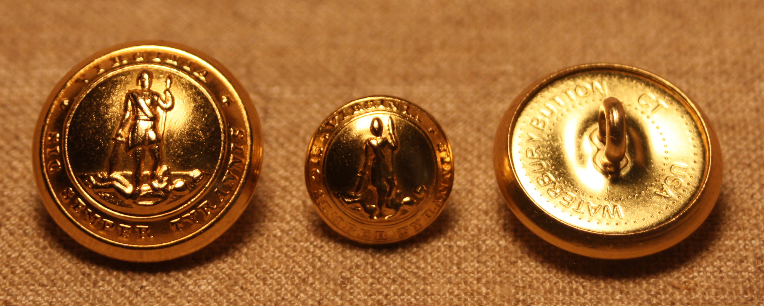 New!! Virginia Buttons in Stock! These superior quality, high dome Virginia buttons, produced by Waterbury, feature a gilt finish and 'old style' back will greatly enhance the quality of your garment. A Button Baron Exclusive!