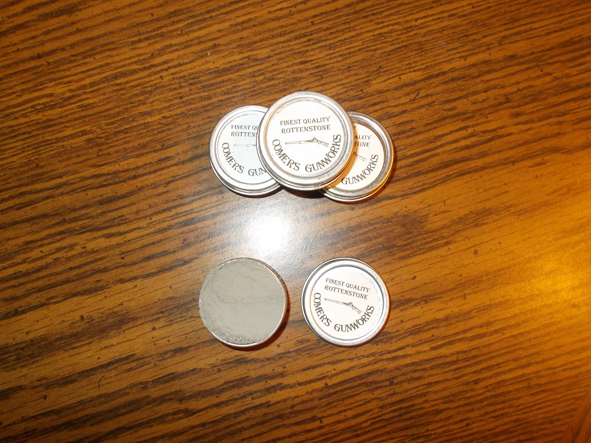 Comer's Gunworks is introducing a new item for sale. Rottenstone, a finely crushed limestone, was a period product that could be used to clean the rust off firearms polish buttons and shine other metals. In fact, it was used to polish the plates for daguerrotypes since is was the finest abrasive available.