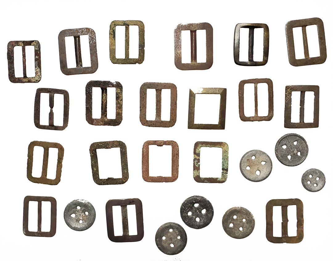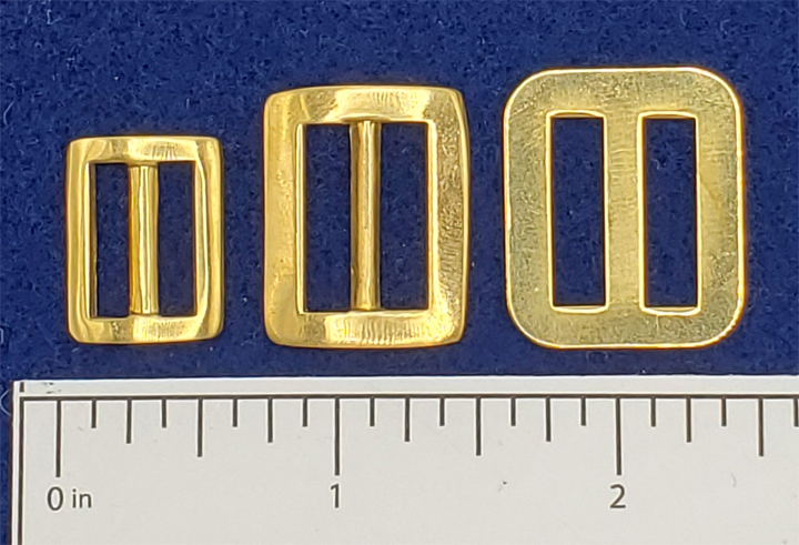 New! Three exact, fine, reproductions of stamped brass chin strap buckles made exclusively for us from original dug specimens in our collection. This small grouping was found at a former Southwest military post property that was in use circa 1830's to 1900. Find them at: https://www.buttonbaron.com/Buckles-...ravat_c_9.html Thank you. The Button Baron