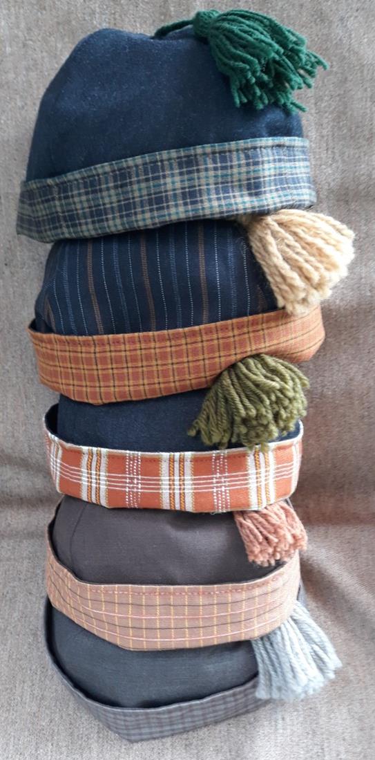Five newly handstitched round caps are made of fine, lightweight wool which makes them ideal for summer. They will provide a shield from the sun and year-long protection from the dew and damp.