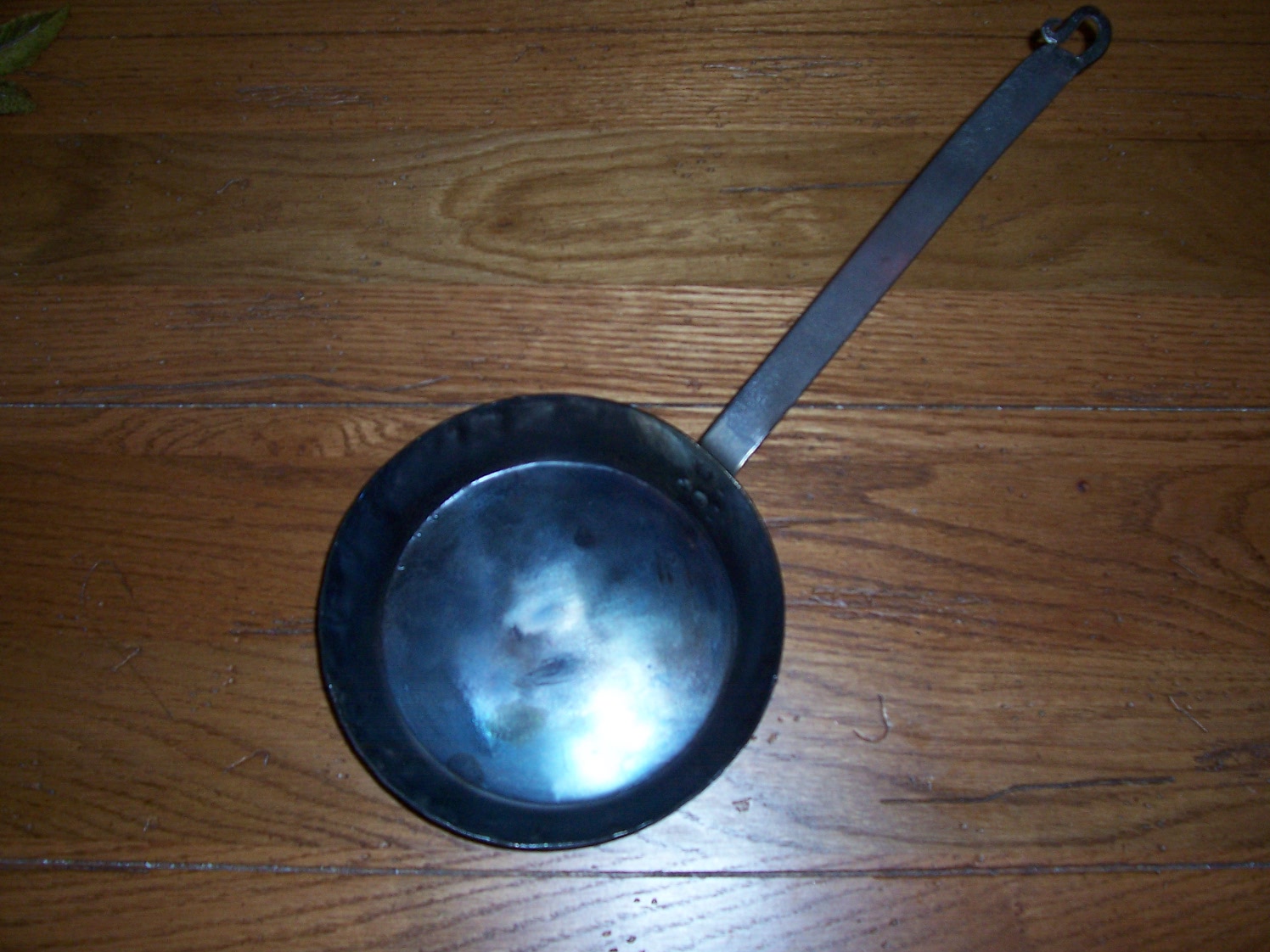 Carter & Jasper has just received a stock of new skillets custom made by our blacksmith. These skillets are COMPLETELY hand made. The pan is pressed in the blacksmith shop and then the handle is added using three rivets. The pans measure approx. 7 inches in diameter across the top and have a 9-10 inch handle. They weigh only 10 ounces. The large skillets are made in the same fashion but measure 10 inches in diameter across the top, with a 12-14 inch handle. Introductory price is $45 for small and $55 for large.