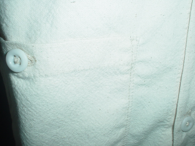 1. Shirts are completely handsewn and made from heavy weight period weave osnaburg. Shirts are based off of the Campbell shirt in the M.O.C. Both are 44"ish" in size. Excellent costruction, best shirt on the market. $125