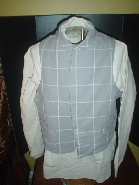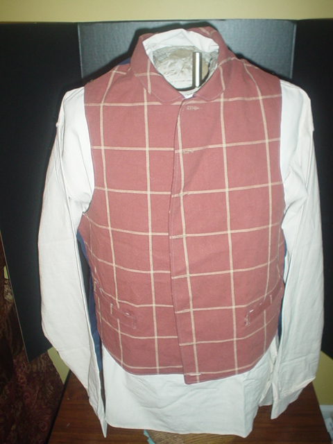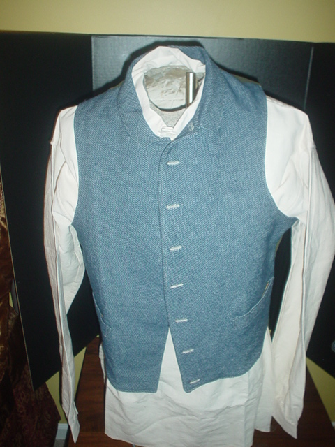 First, I have new vests made from the old Joe Covais pattern. These are civilian vests with a fold down collar. Buttons are not currently on the vests, but can be included with the vest.