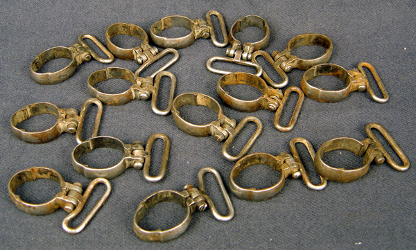 The last time I saw Lodgewood selling these, he was charging between $100 and $150 each for them. I am offering them to the A/C community for $80.00 including shipping. If you purchase three or more (shipped in the same package) I'll knock them down to $70.00 each, including shipping. There are three or four bands in the lot with slightly bent sling swivels, if anyone wants those bands, I'll knock $10.00 off of them from either of the above prices. Pictures of the bands are attached to this post.