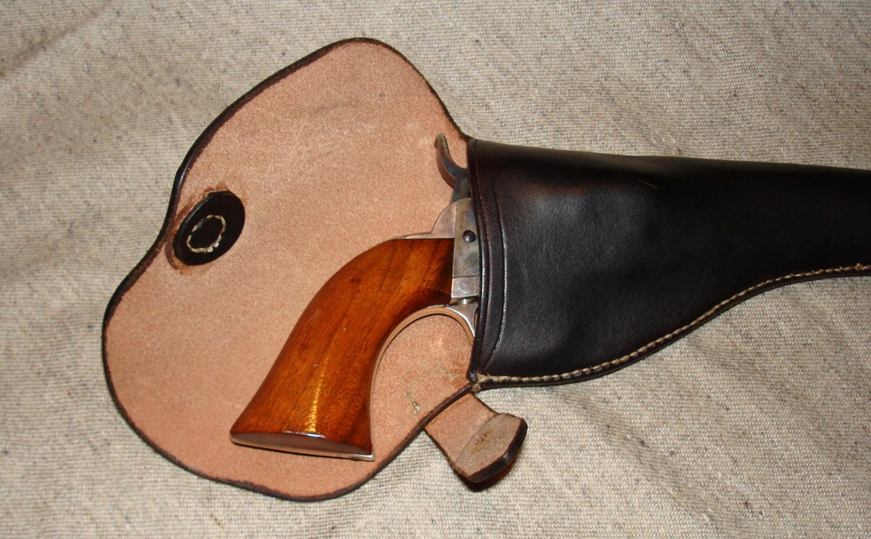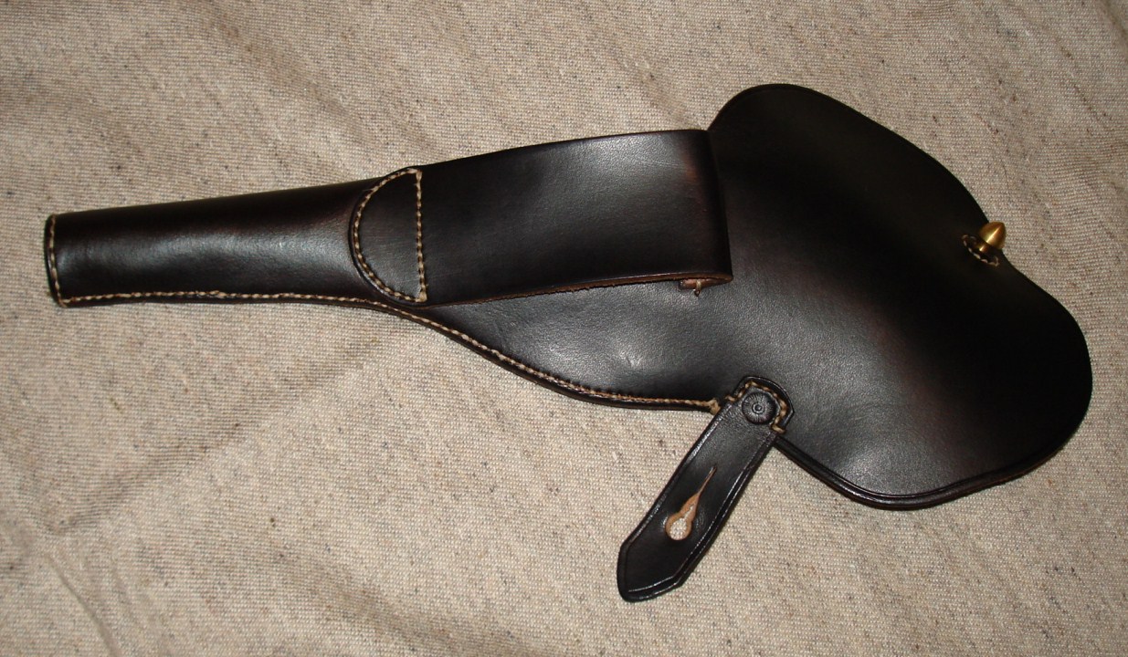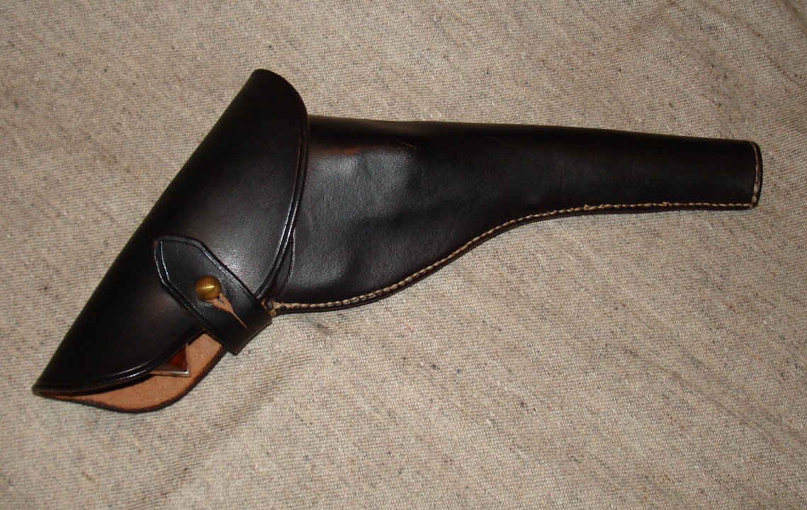 The holster is based on an original that Brian examined (he was kind enough to show me photos of the original) and is very well made with great hand-stitching. The pistol fits in the holster p-e-r-f-e-c-t-l-y.