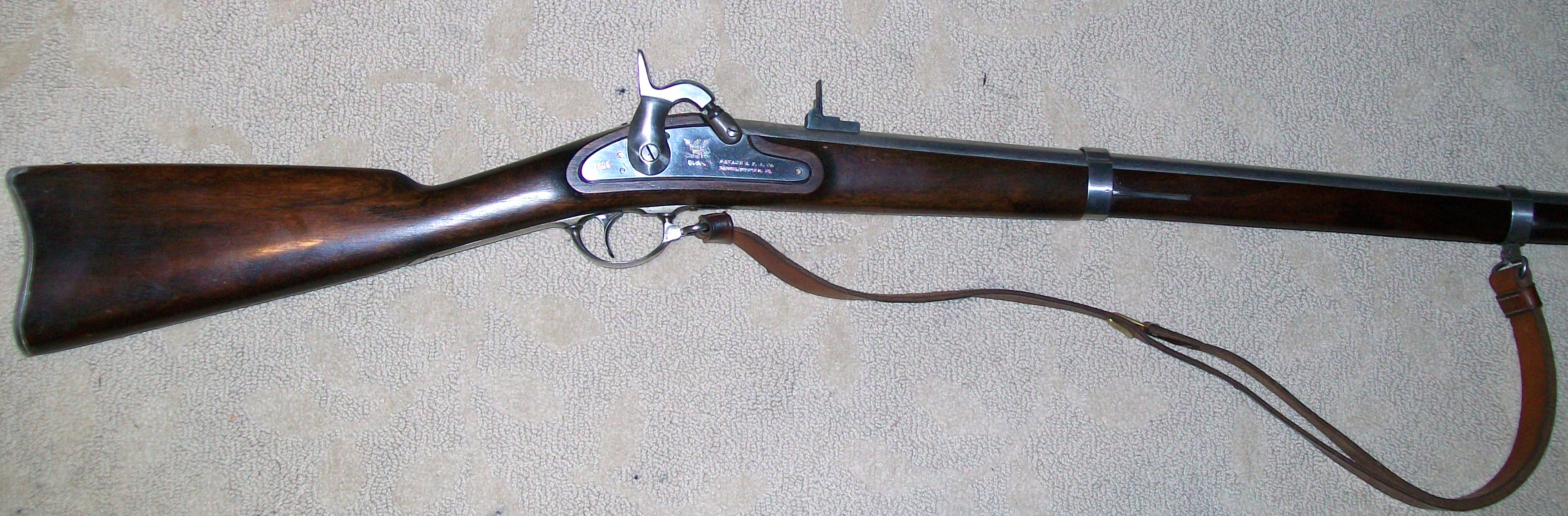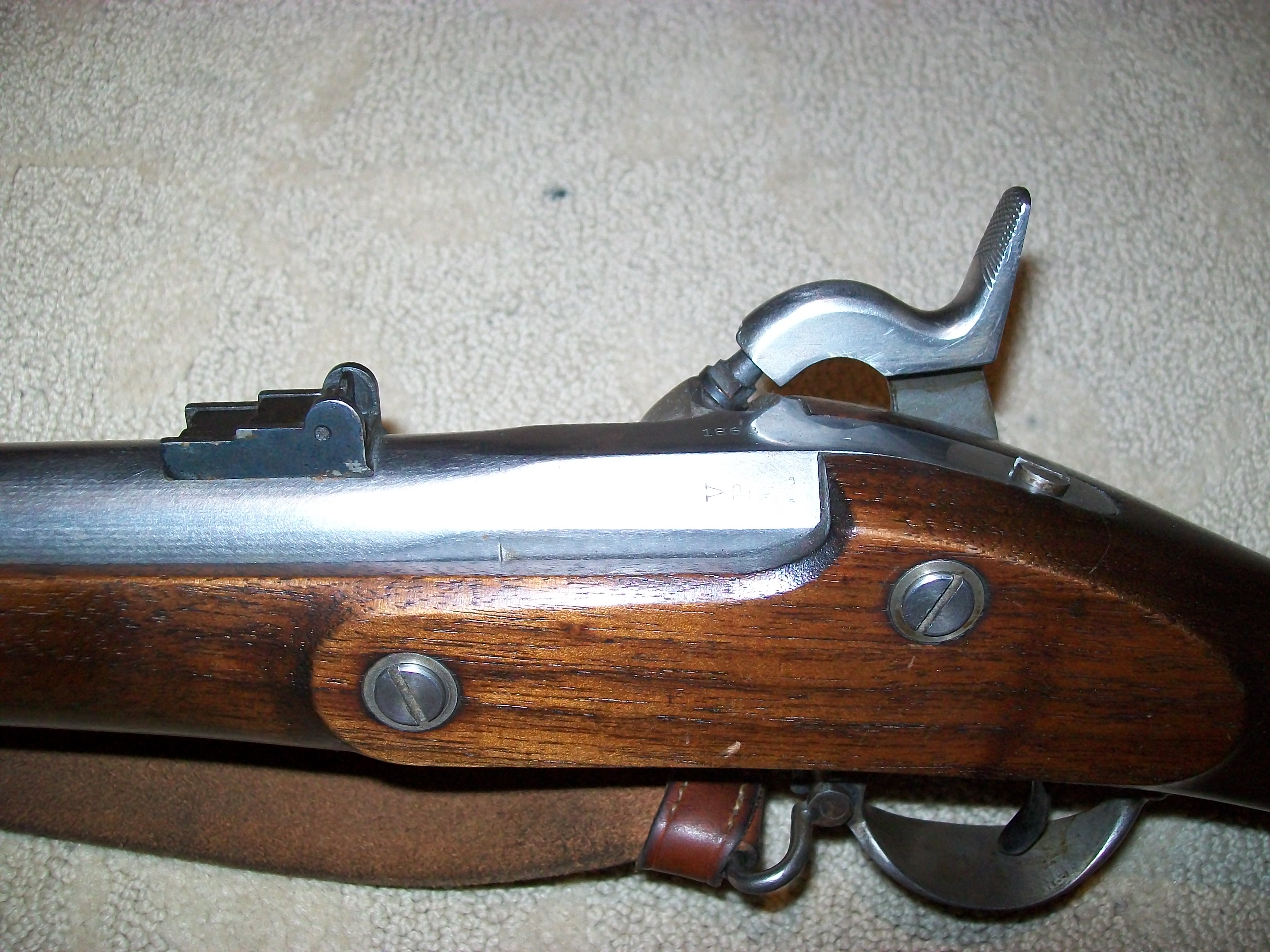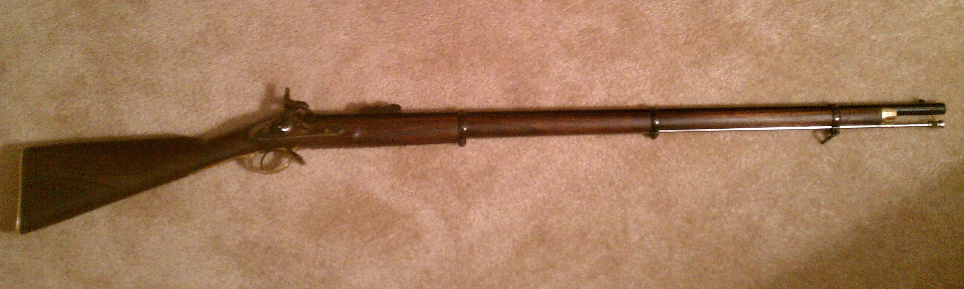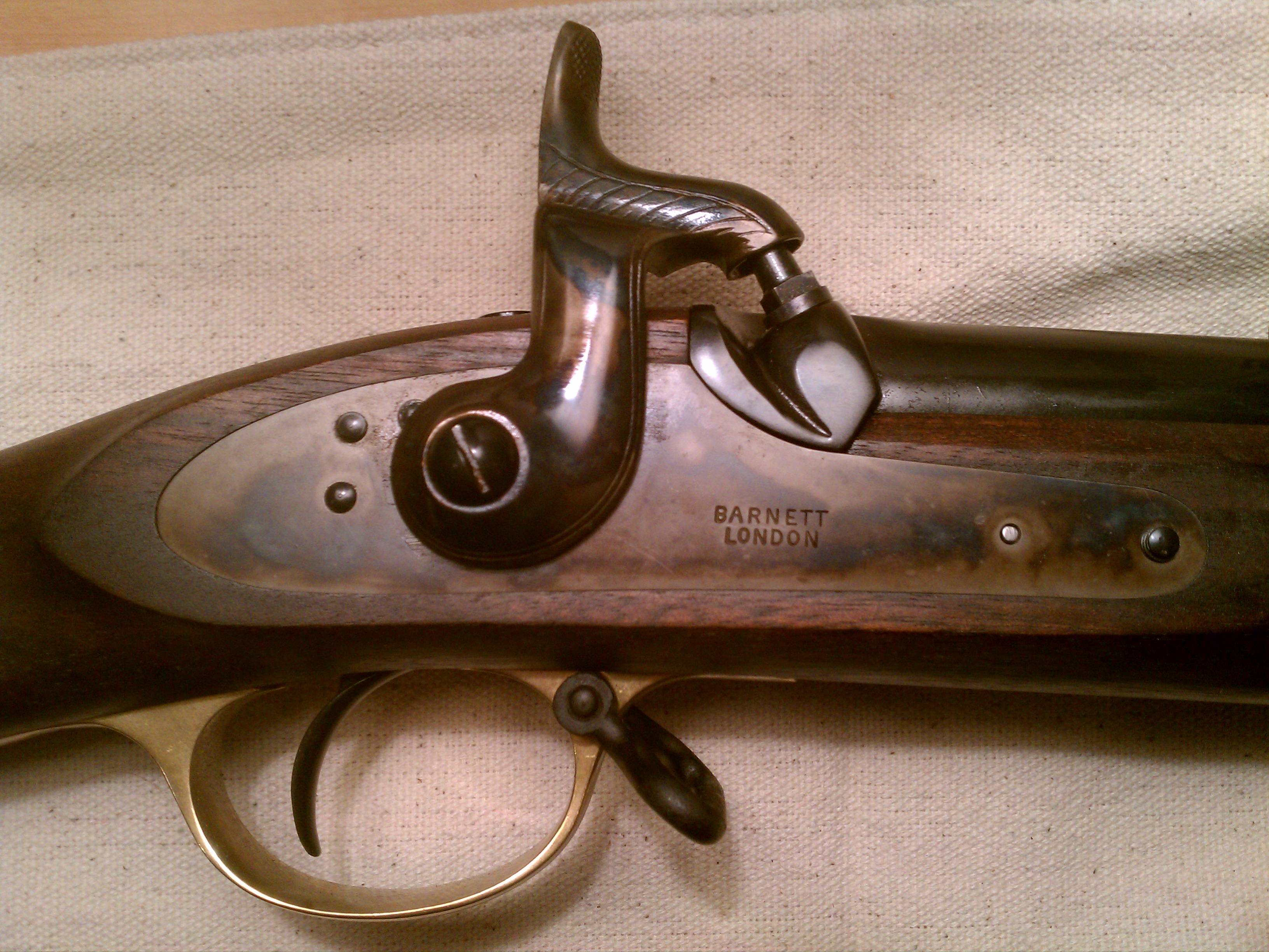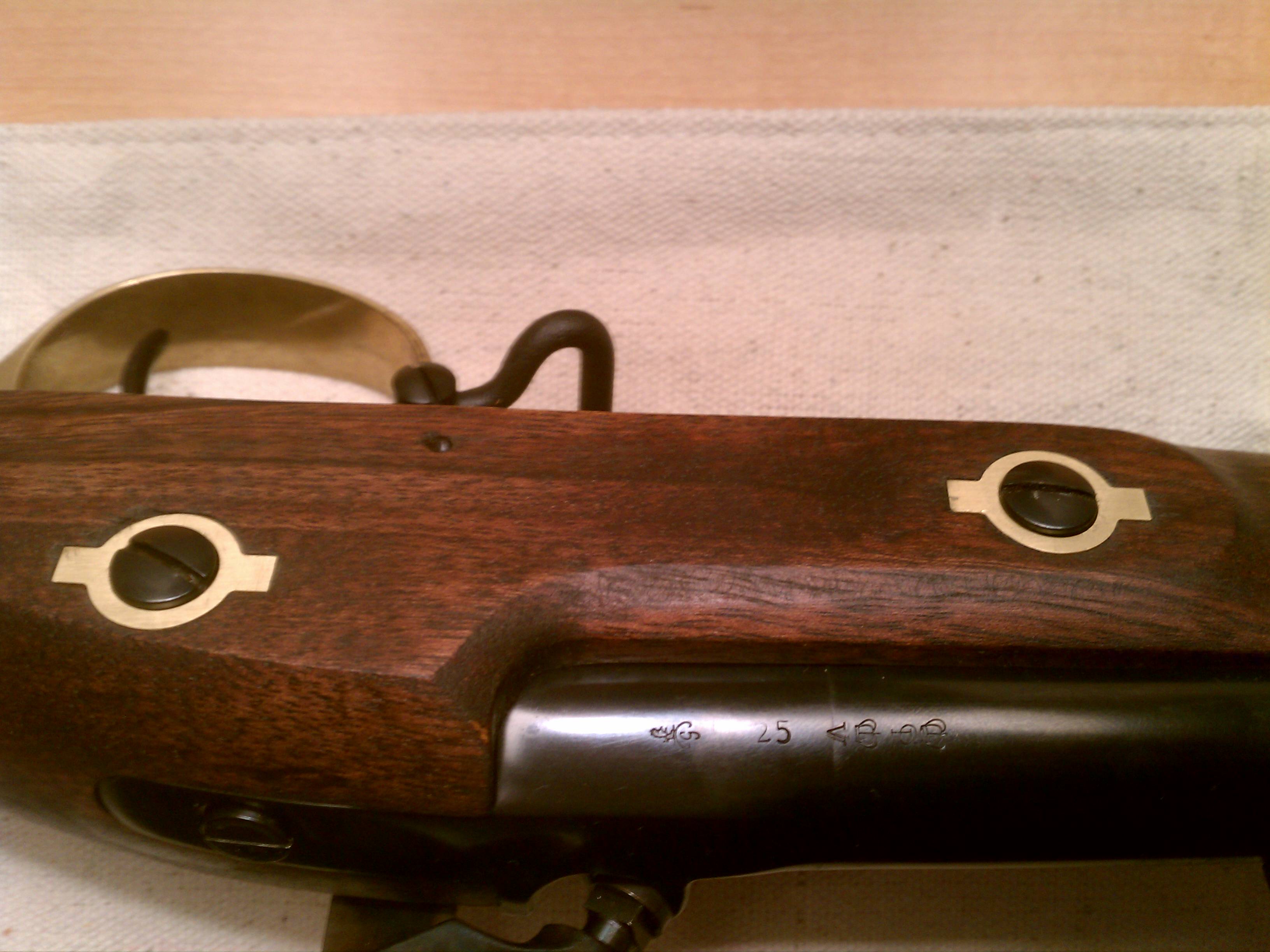 I just got my new Armi Sport 1853 Enfield back from getting defarbed by James River Armory and I am so excited, I had to share it with y'all! After talking it over with Mark, I decided to go with the Barnett Lockplate, and stamps and I couldn't be more pleased with how they turned out! Not only was the service prompt, but Mark was very patient with my laundry list of amateur questions. I am throwing up some pictures for everyone to see what a great job he did on it! I am kicking myself for not having a "before" picture, but to see one of those, all you have to do is look at any new, off the rack, Armi Sport Enfield. There's a lot that was done but I'll try to list what I remember: