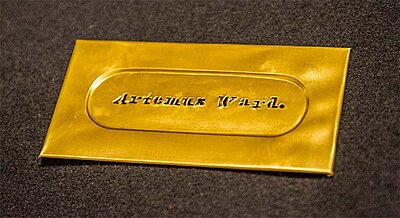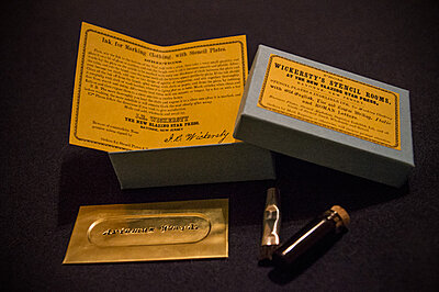 · One 2.75" x 1.5" brass and zinc stencil stamped using original letter dies.