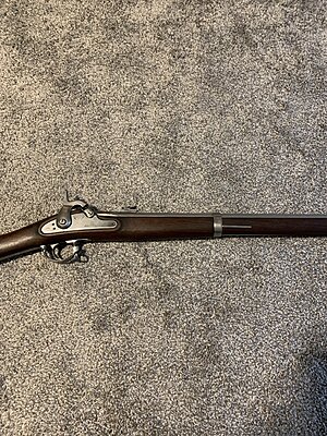 I have an Armi-Sport 1861 Springfield rifled musket in great condition that was defarbed by Michael Comer 3 months ago. It has one small issue that I'm told can be fixed by anyone with a bit of gun-smithing experience. And that is, the sear spring on the hammer needs to be replaced. This causes the half cock function not to work. I have a new sear spring that I will include with the purchase. I don't, however, have a bayonet or sling to include. I'm asking $950 shipped. If you'd like additional info or pics, please contact me anytime. Thanks!