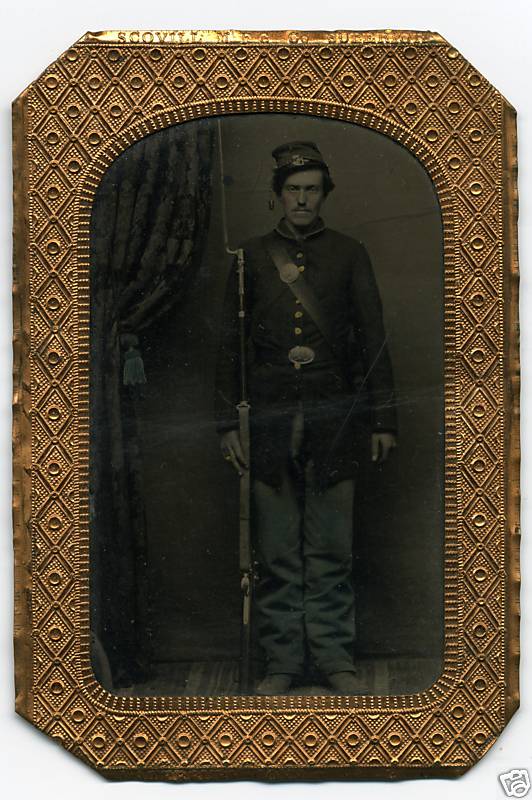 The gun is at the left or at the right I don't inderstand how it's possible because it's a tin type ( picture on tin ware) .