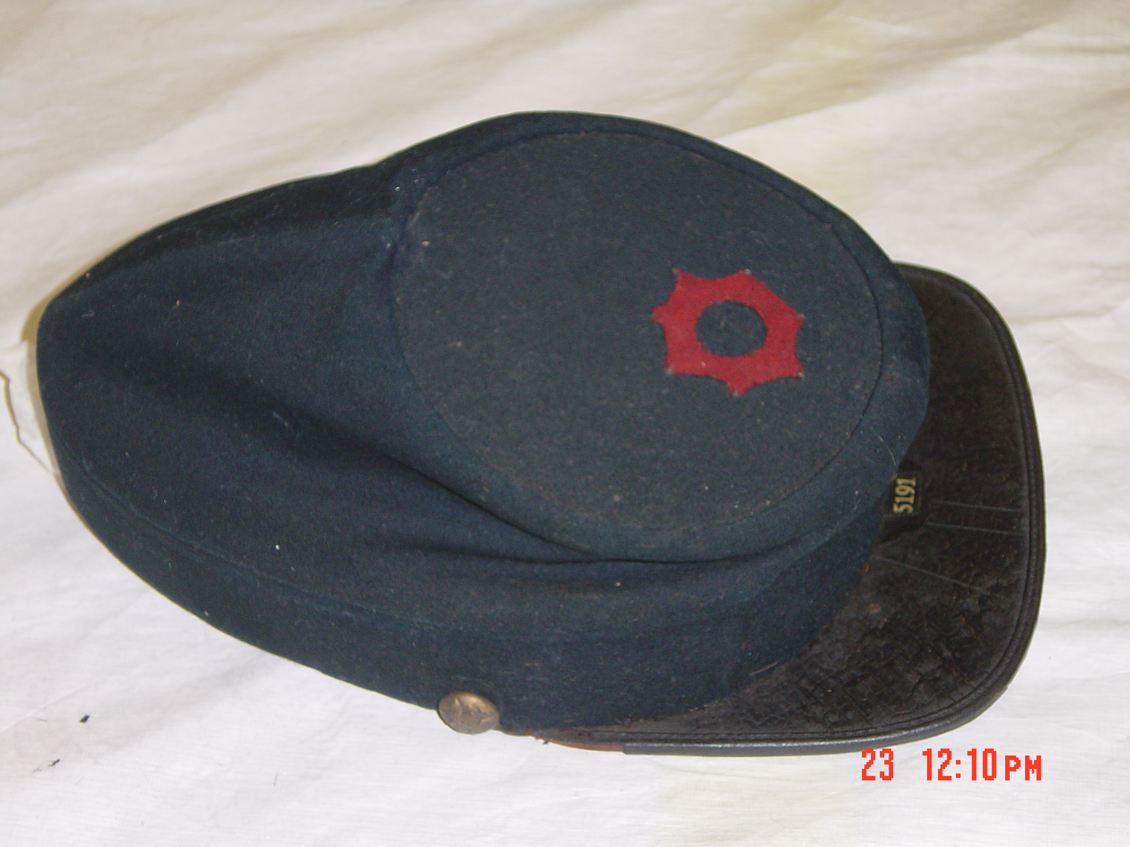 First of all, are we even sure it's a wartime vintage cap? Looking at it from the top, it looks like a postwar GAR or possible state militia/National Guard cap.
