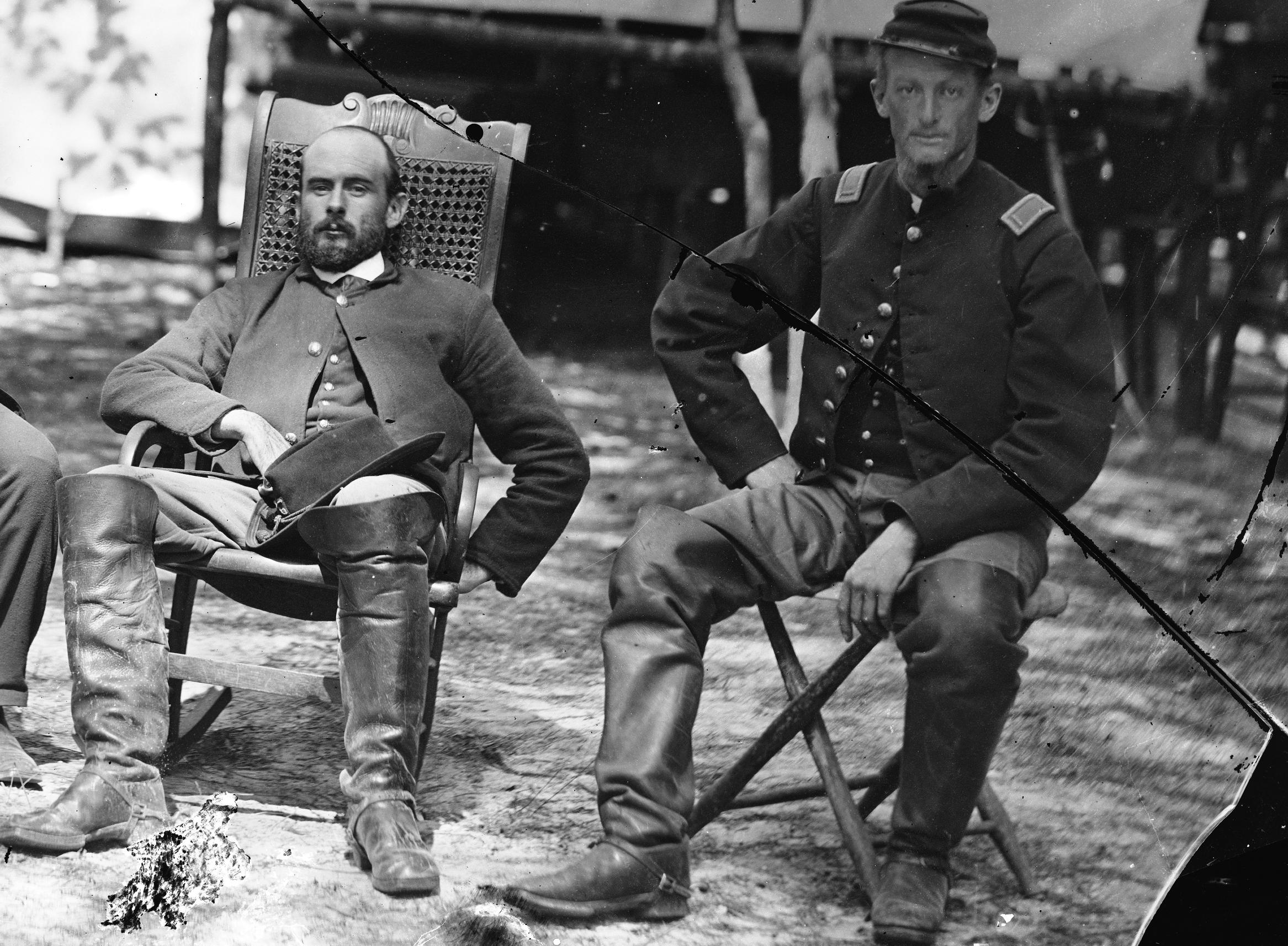 I am finalizing my impression for a captain of the 106th Reg't PVI. I have my officer's sack, kepi, issue flannel shirt, English broadcloth military vest, cravat, "mickey blacks" socks, drawers, Jefferson booties and a pair of boots. I even have a knit undershirt. I have a pair of infantry officer dark blue trowsers with the sky blue piping. These, however, are leftovers from my early days. And are of the sutler row variety. Albeit with handworked buttonholes. My question is this: would my plain sky blue Schuylkil Arsenal enlisted trowsers ( from Chris Sullivan at Stoneybrook) be okay to use here? I do not have the capital to layout for a correct pair of trowsers at this time.
