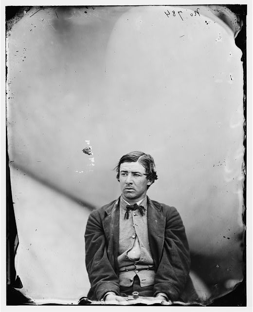 While we're looking at images of the Lincoln conspirators (guilty traitorous muderers, if you ask me) and whether or not the cut of their clothes is military in nature, I can without a doubt say that the dress of John Surratt is absolutely so in style: