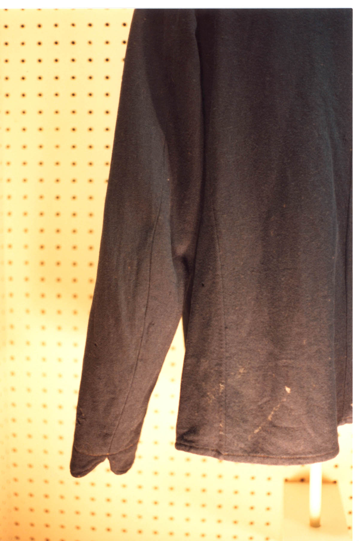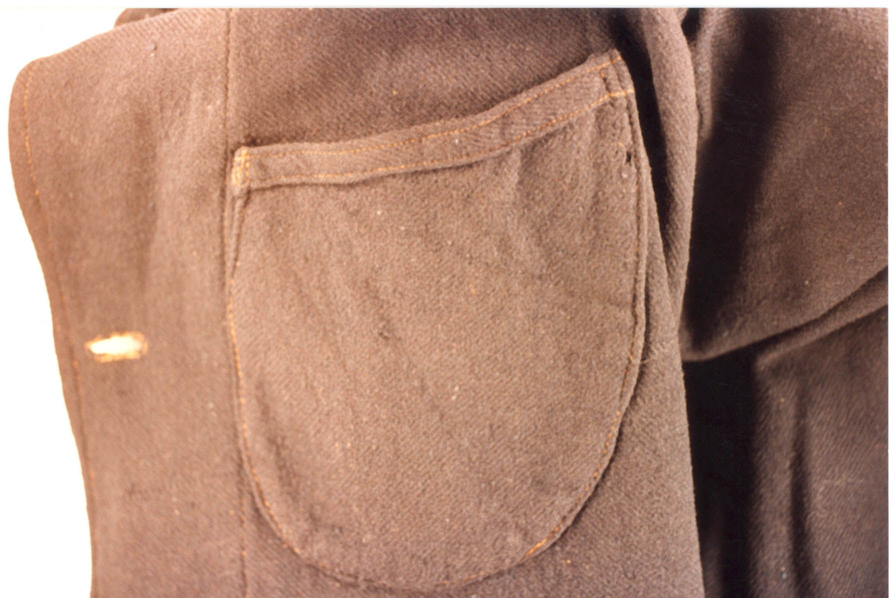 These are the photos I have of the one Steubenville blouse. It matches Brian's description of an unlined sack coat in the body with flat-felled seams yet lined sleeves. Being lined, the sleeve seams did not require felling.