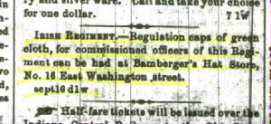 The 35th Indiana "1st Irish" was formed to draw in the strong Irish population of Indiana. A bright green kepi and green stripped uniform was said to be distinction of the unit. There was several issues of the Indianapolis Journal gave description of the regulation cap of green cloth and where to get them. The Manual of Arms website gives an accurate description of the only original Kepi left(Thank you, Mr.Edwards for posting that). It was green because of the close relationship the Irish had with the color and Irish Nationalism.