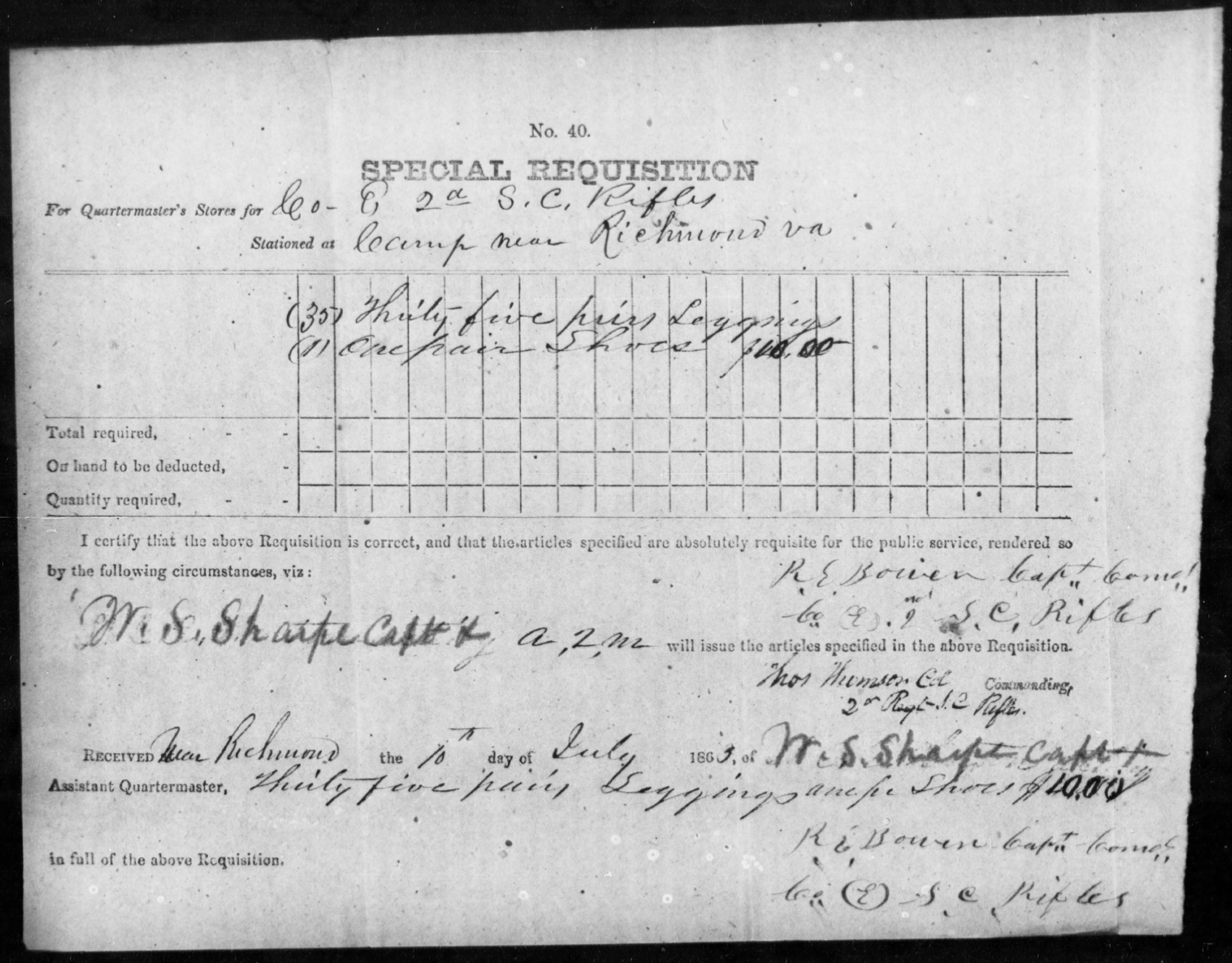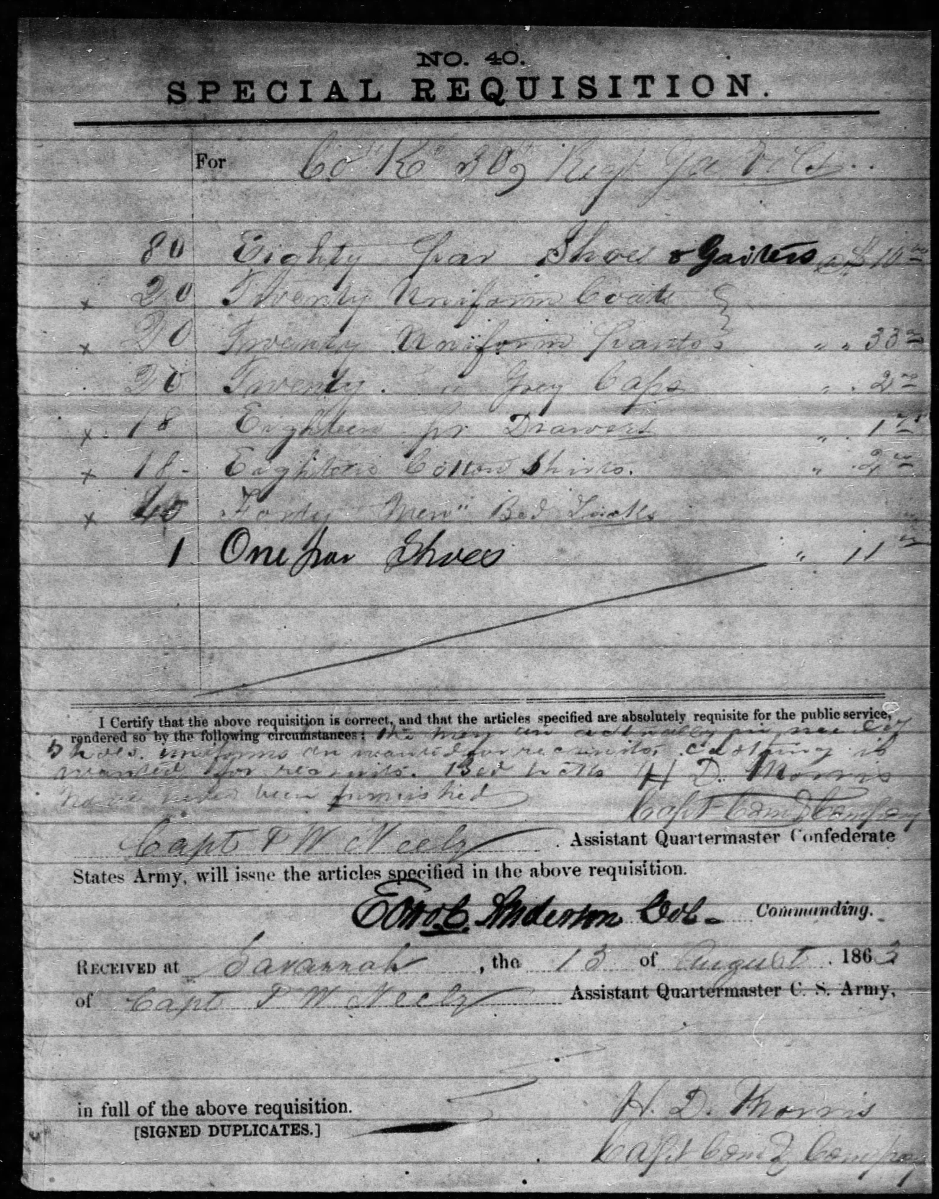 Just looking to stir some debate. Recently I've found a couple of quartermaster documents detailing issues of gaiters to C.S. troops in the mid-war time frame: