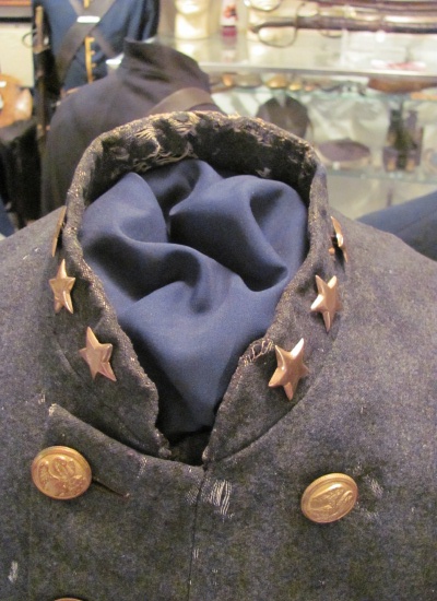 I'm curious if anyone has encountered this specific design of Confederate collar insignia made of what appears to be solid metal rather than metallic wire embroidery or stamped metal sheet? It was found on an unaltered, extant Louisianan Colonel's frock coat in a private collection: