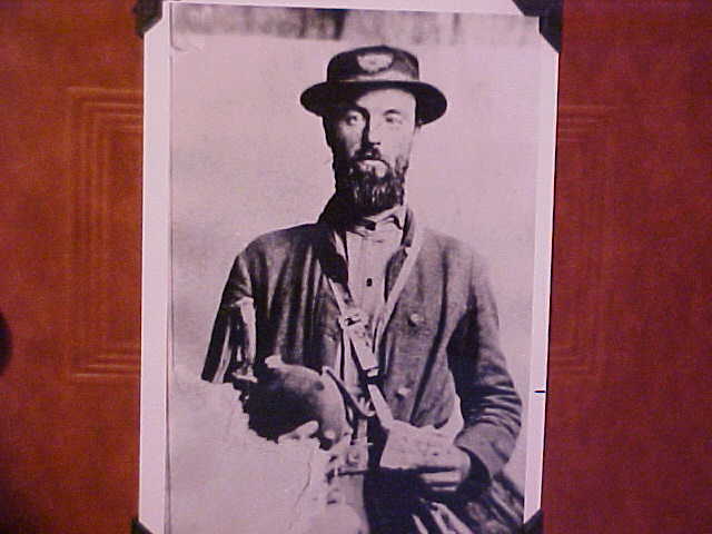 This image turned up in the estate of a collector who passed late last year. The original is a CDV with some damage (white area below the canteen). I made a copy photo and submit it here with the permission of the present owner, David Mumper. The image may be reproduced if credit is given to Mr. Mumper.