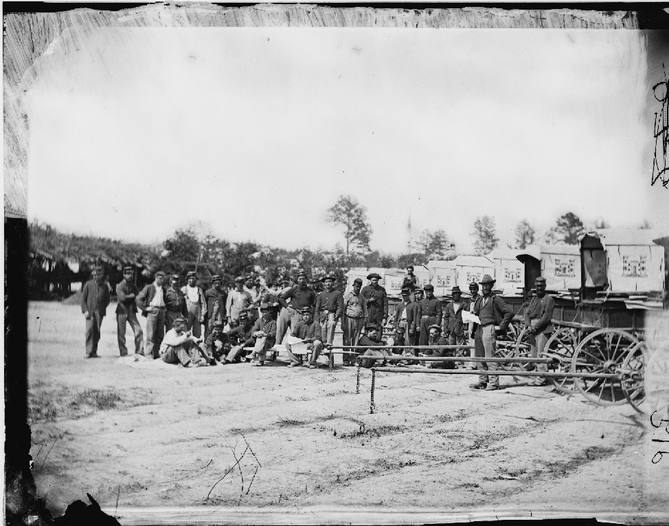 TITLE: [Falmouth, Va. Men and wagons of the Engineer Corps ambulance train]