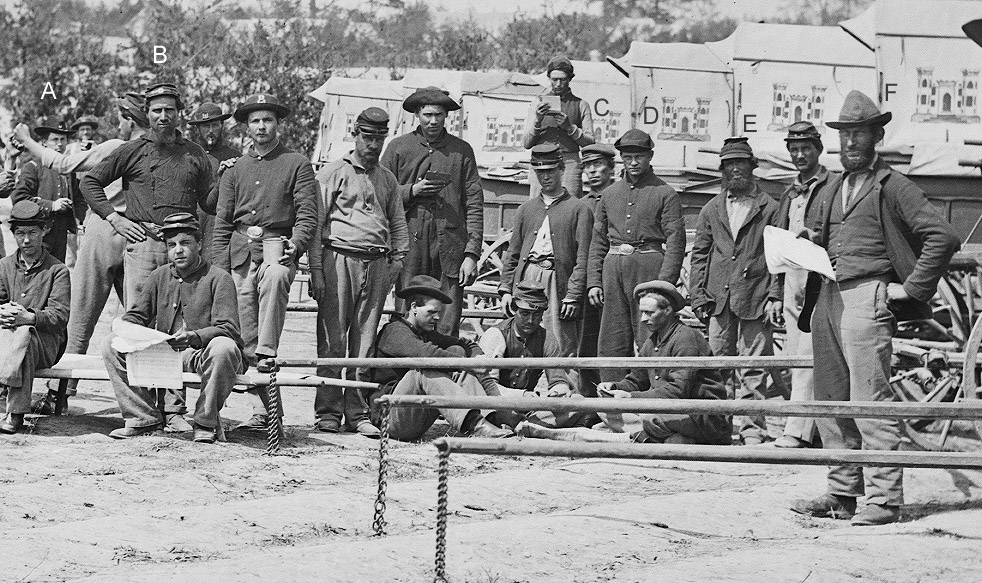 Nice variations in dress in this photo. I'm sure many of you have noticed that most of these soldiers are carrying contents in their sack coat pockets.