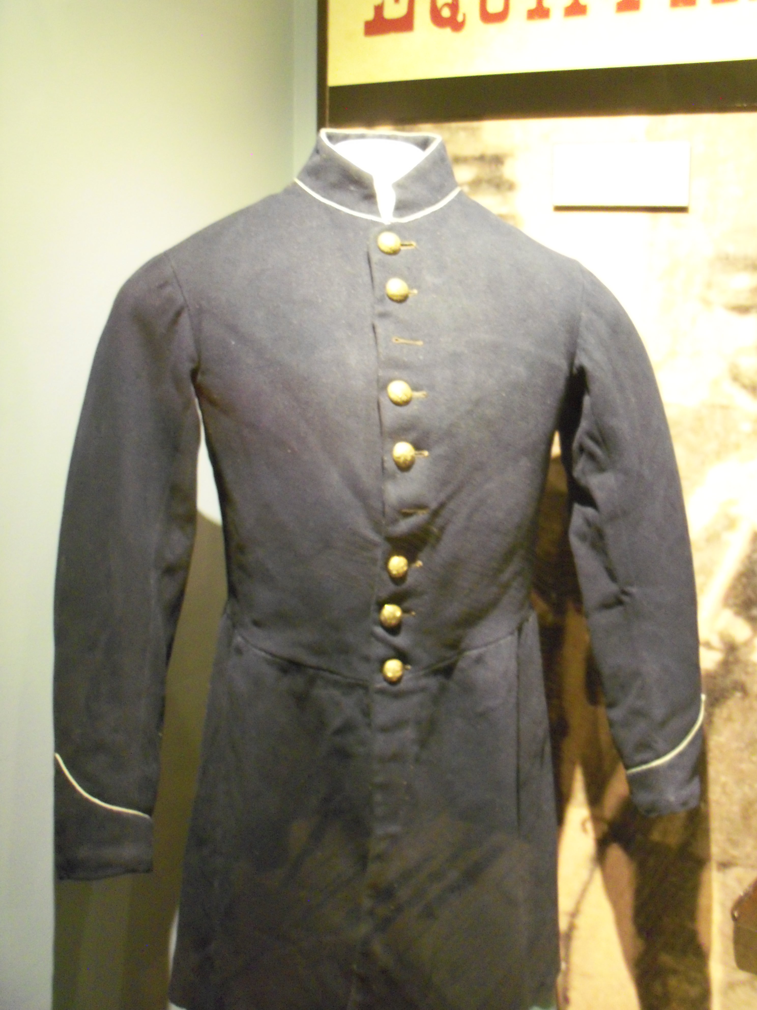 We stared at the coat for quite a while, and none of us could remember precisely what the one looked like that was in the old exhibit and whether this was the same one or not. The old exhibit just gave the regiment, not a name or rank- so we always assumed it was one of the end-of-service St. Louis ones issued to the enlisted men. I really don't remember it well enough to tell if this is a different one or if they simply have a more descriptive label now.