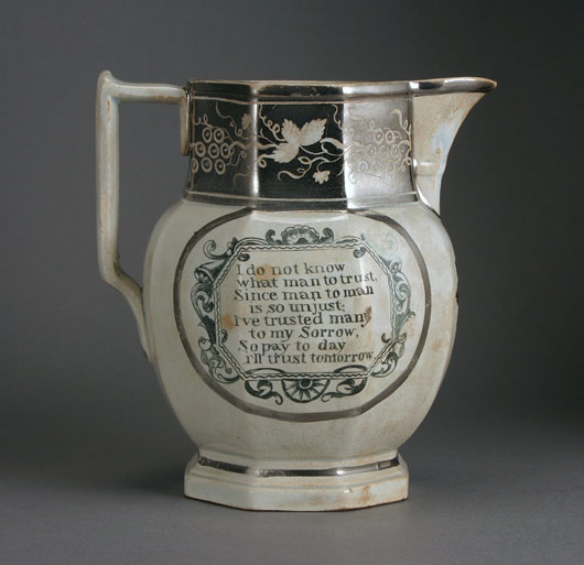 Unmarked softpaste Silver luster jug. Dixon "Pearlware". Sunderland, England ca 1840.