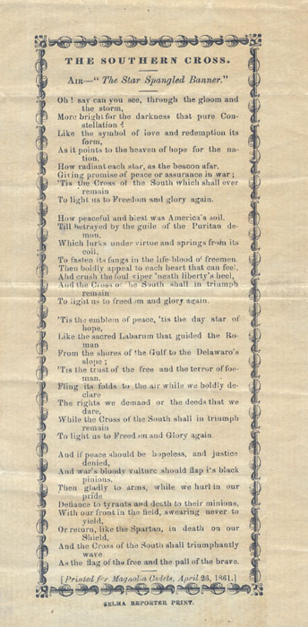 [Printed for Magnolia Cadets, April 26, 1861.]