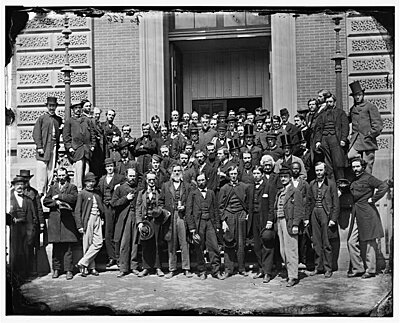 I'm hoping one of you will be able to help me. I am currently doing a project looking at photographs of civilians associated with the United States army, looking at their facial hair. There is a wonderful image of employees of the Quartermaster Department in Washington, which I've attached. Unfortunately the only version of the image I can find is rather small, making it almost impossible for me to look at the details of the facial hair. Anyone have any idea where I can find a larger version of the image?
