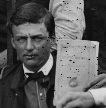 Now that doesn't mean the fellow is holding the most current issue, and I can't make out the volume number, but still, pretty cool to be able to see some of the words he may have read.