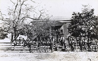 I will preface this with saying I am not as familiar with the Army of the Potomac's uniform changes throughout the war beyond the basics, however I thought I had read somewhere about there being orders against wearing slouch hats? I think the only forage cap I see is on the person above the left shoulder of the man with the cane and that is hard to make out for sure due to shadows. Just looking at the picture without context you could have easily guessed this to be Western Theater based on headgear.Jake Koch