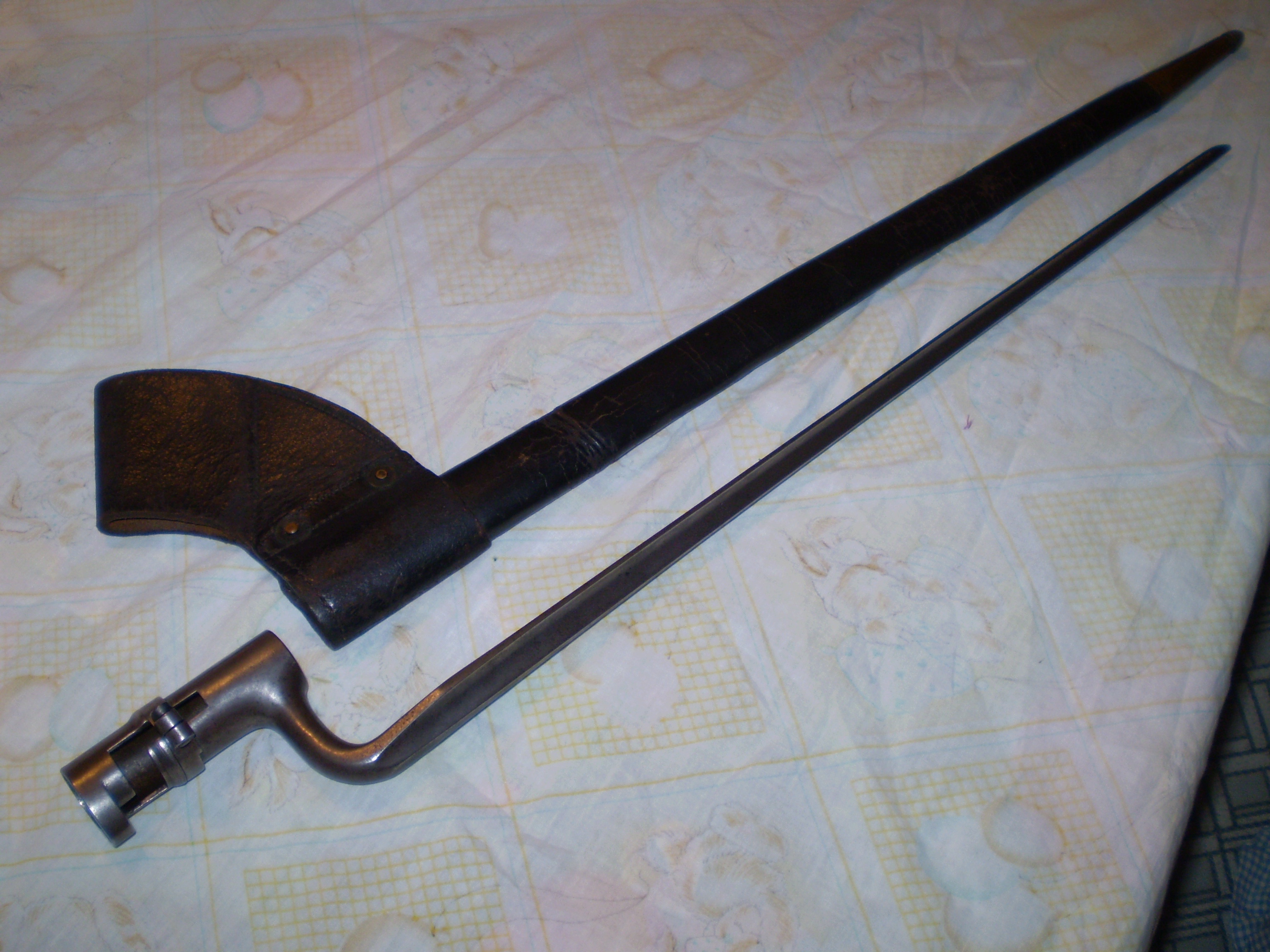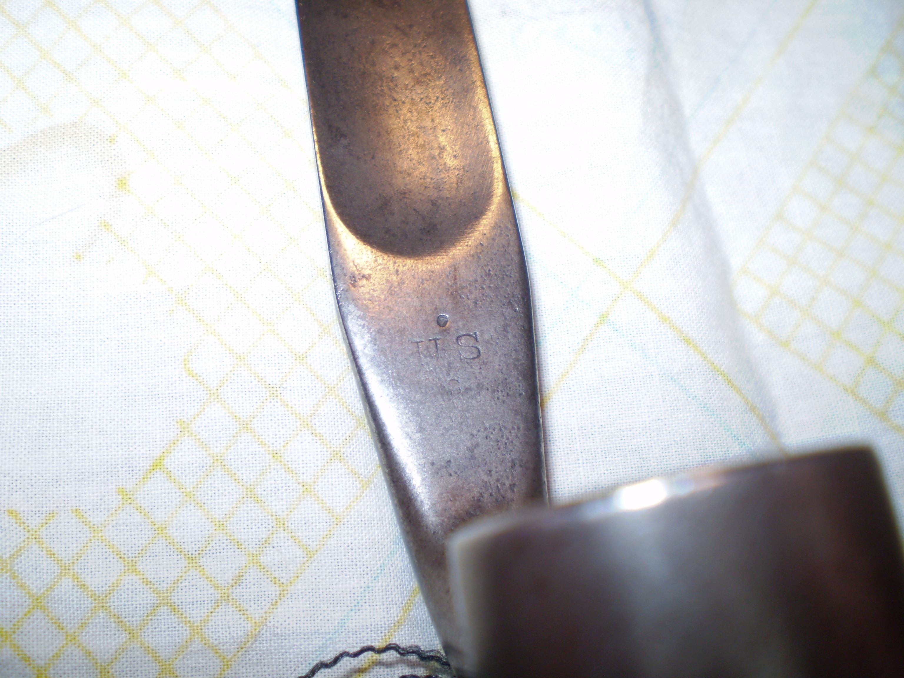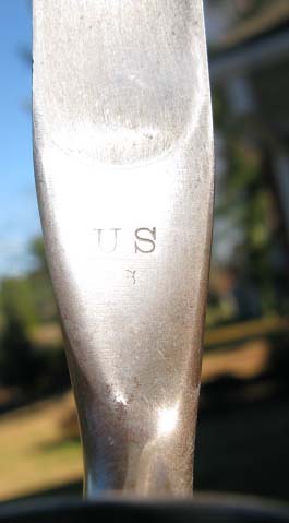 Here are 2 pictures of my M1855 bayonet with a 2 rivet scabbard. Of particular interest is the center-punch mark above the U.S. There is also a small "s" below the U.S. These markings are associated with the Springfield Armory. Hope you enjoy.