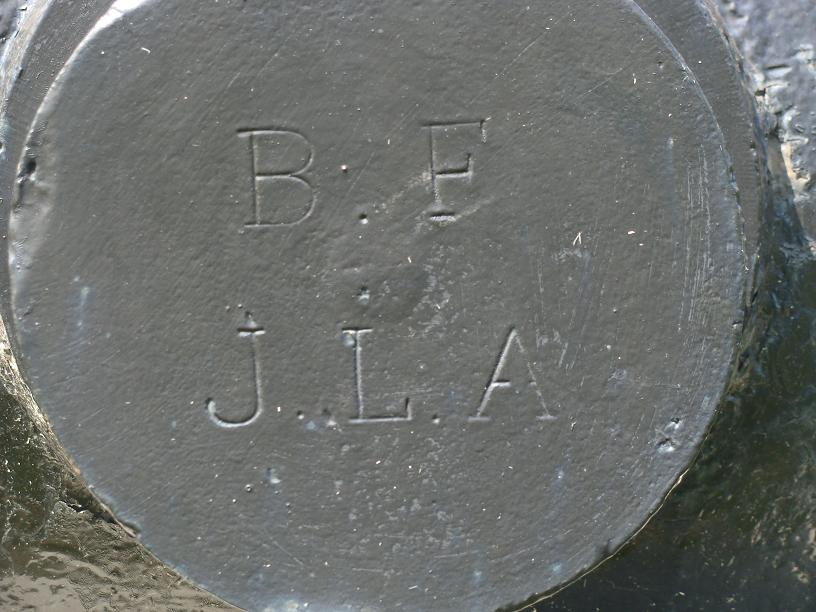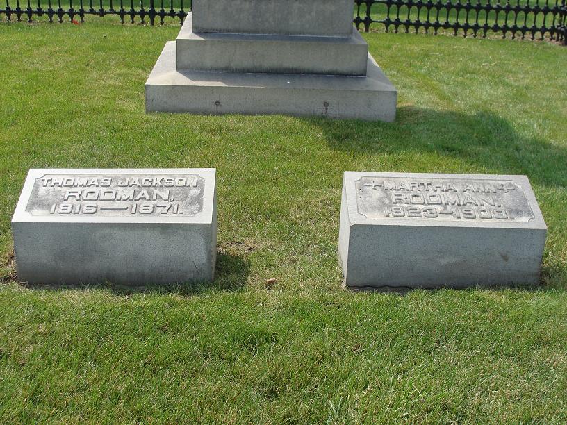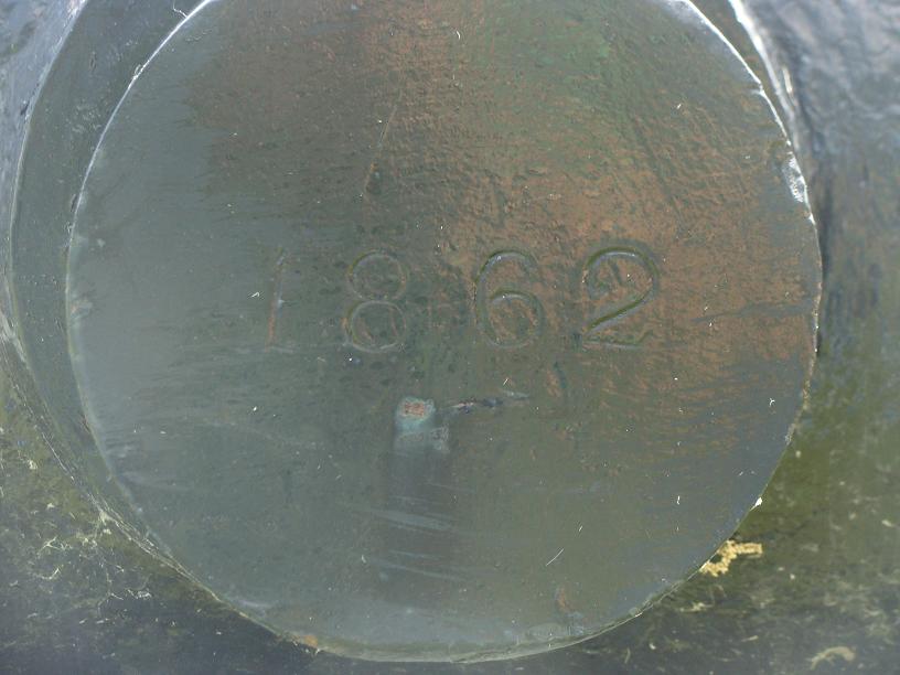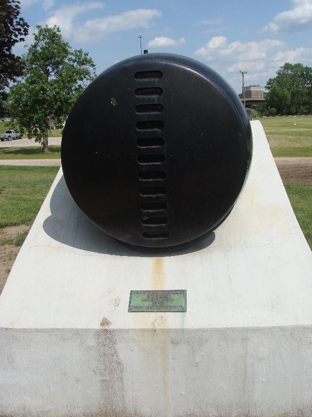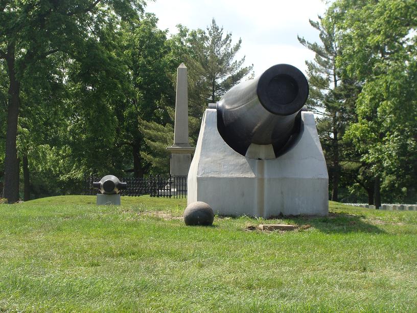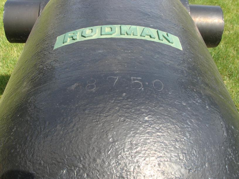 This weekend I had a chance to visit the Rock Island Arsenal and while there took some photos of General Rodman's grave. I thought I would post these here for the artillerists, as I would say that Rodman's is perhaps one of the best guarded monuments on the Island, there being two Rodman guns whose size I don't know, as well as a fifteen inch gun. The grave is located towards the Illinois side of the cemetary, and unfortunately is next to the driving range. I've included images of the right and left trunions of the smaller guns (identical on both; date on left trunion, initials on right trunion) as well as the numbers on the breeches of the smaller guns. The artillery shell was off to the side of where it normally sits as it appeared that the cemetary caretakers had recently poured a new pad for the shell. I'm not sure if the round opening in the shell is for a fuse or for a mounting rod to hold it on to the base, although there was no such rod present in the wet concrete.