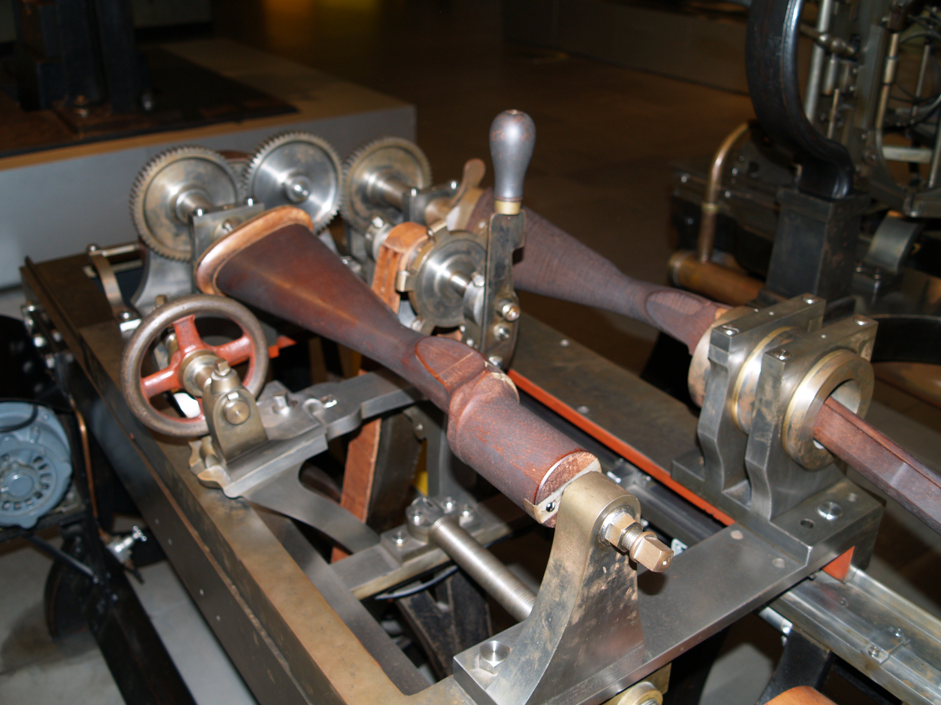 It is an 1857 Ames Gunstock copy lathe which was originally installed in the Royal Small Arms Factory, Enfield in 1861. The complex patterns of a three dimensional stock could be reproduced very quickly and to within better tolerances, making weapons parts closer to interchange.